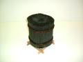 <木炭インテリア>直径の大きなくぬぎ材を焼き上げました。シュロ縄を巻いてかっこよく仕上げています。オリジナル木製置き台付、木炭は愛媛県上浮穴郡久万高原町産、友人が経営する炭焼工房の作品です。置き台は私の作品です。木炭最大直径19cm高さ22cm(画像木炭は現物商品です。同じサイズ、同じ形の物はありません。)