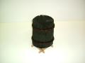 <木炭インテリア>直径の大きなくぬぎ材を焼き上げました。シュロ縄を巻いてかっこよく仕上げています。オリジナル木製置き台付、木炭は愛媛県上浮穴郡久万高原町産、友人が経営する炭焼工房の作品です。置き台は私の作品です。木炭最大直径17cm高さ22cm(画像木炭は現物商品です。同じサイズ、同じ形の物はありません。)