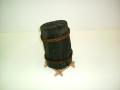 <木炭インテリア>直径の大きなくぬぎ材を焼き上げました。シュロ縄を巻いてかっこよく仕上げています。オリジナル木製置き台付、木炭は愛媛県上浮穴郡久万高原町産、友人が経営する炭焼工房の作品です。置き台は私の作品です。木炭最大直径15cm高さ24cm(画像木炭は現物商品です。同じサイズ、同じ形の物はありません。)