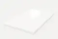 テーブル天板単色白・抗菌仕様の鏡面艶有り仕上げ。美しい光沢が空間に上質な印象を与えます。高い耐久性を備え、サイズもご指定いただけます。